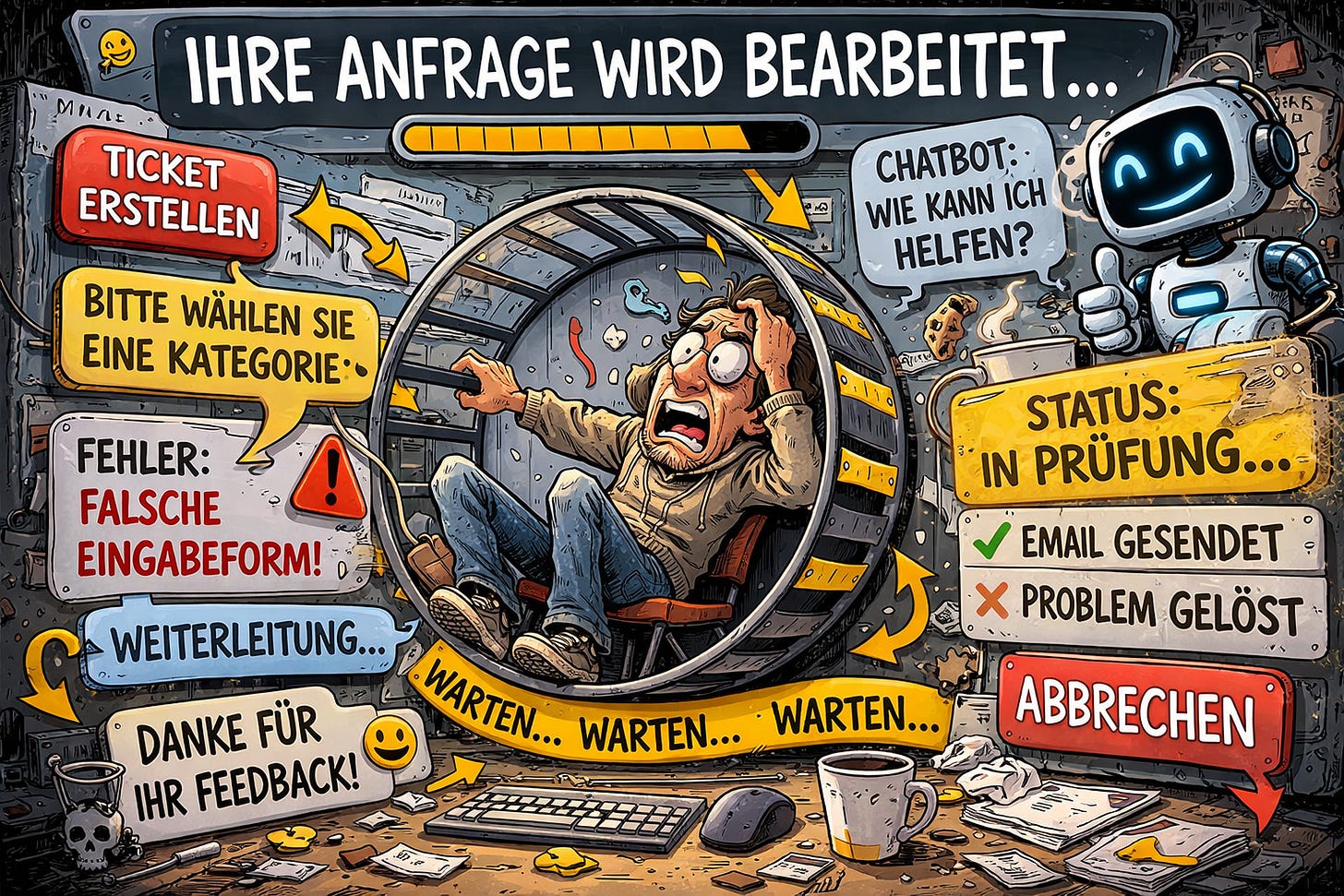 Der Support ist keine Kommunikation mehr. Er ist eine Simulation menschlicher Anwesenheit – ungefähr so lebendig wie eine Lautsprecher-Durchsage auf einem Bahnhof.